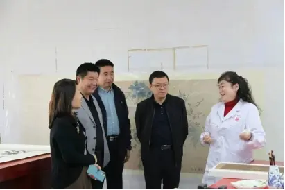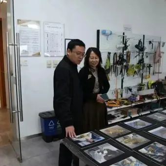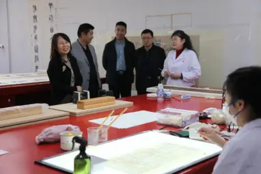 北京乐石文物修复中心总经理郑燕鹏带领校方参观了纸质文物修复室、丝织品文物修复室、金属文物修复室的文物修复工作现场,以及近期的文物修复项目成果。