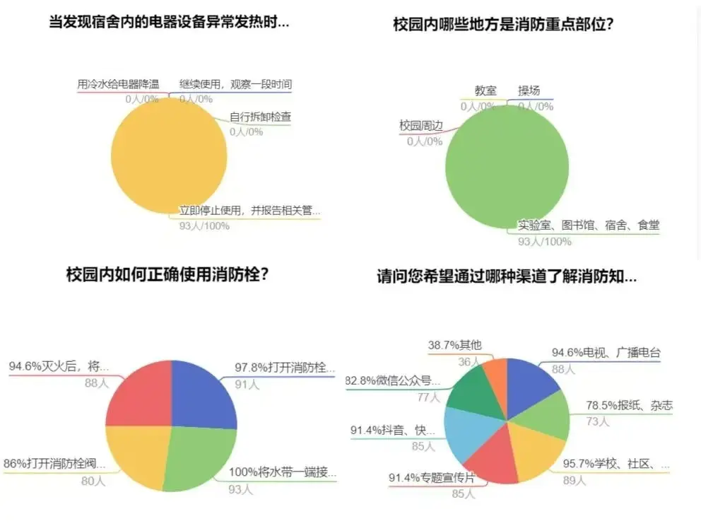 通过问卷答题结果来看,全体学生党员和入党积极分子基本掌握了消防安全知识,能够对日常消防安全隐患事件做出正确判断。同时,借此呼吁人文体育学院全体学生积极参与填写调查问卷,提升消防安全意识,营造安全的校园环境,保障师生生命与财产安全。