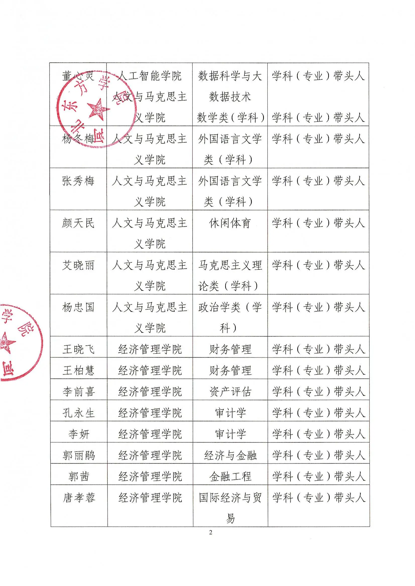 环球ug登录网站关于学科(专业)带头人与学术带头人聘用名单的通知