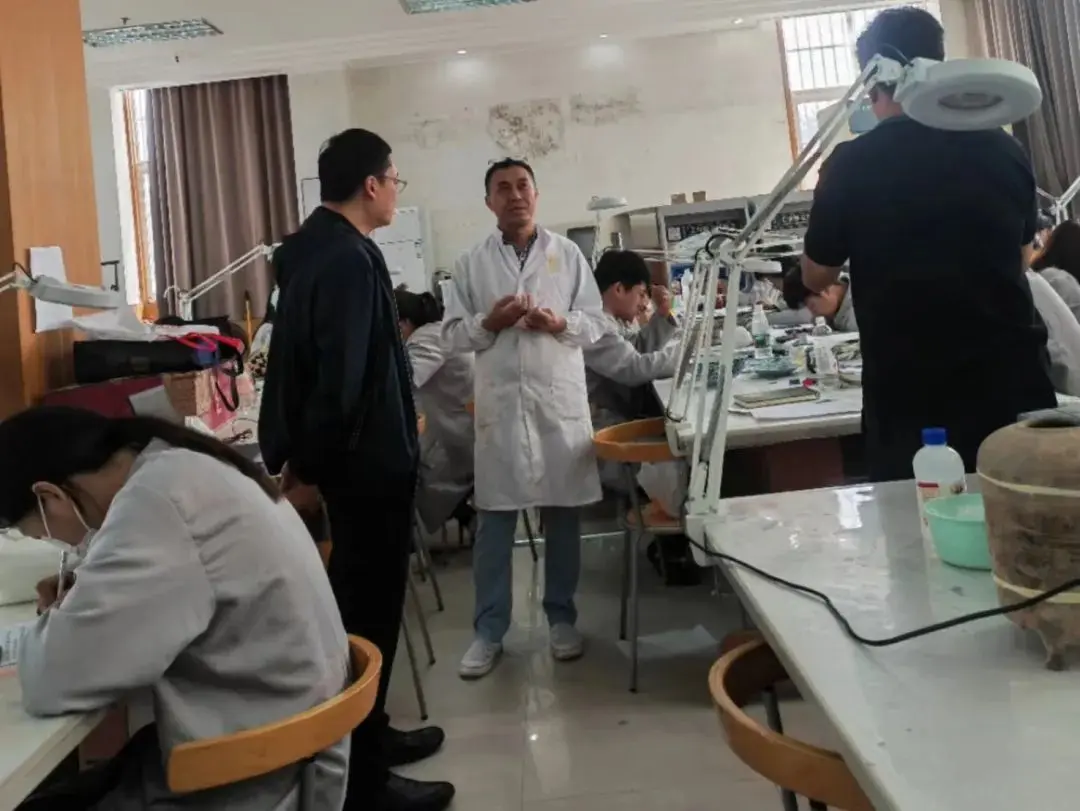 北京乐石文物修复中心领导在校方带领下,参观了我校金属、陶瓷、纸质文物保护与修复实验室以及3D打印等实验室,并观摩了学生们实践课的教学过程。对我校文物保护与修复专业的办学条件及教学能力给予了肯定与赞赏。